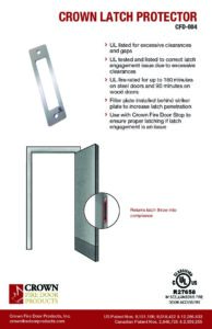 - Use with the Crown Fire Door Stop to remedy excessive clearances on the latch side of steel and wood fire doors.